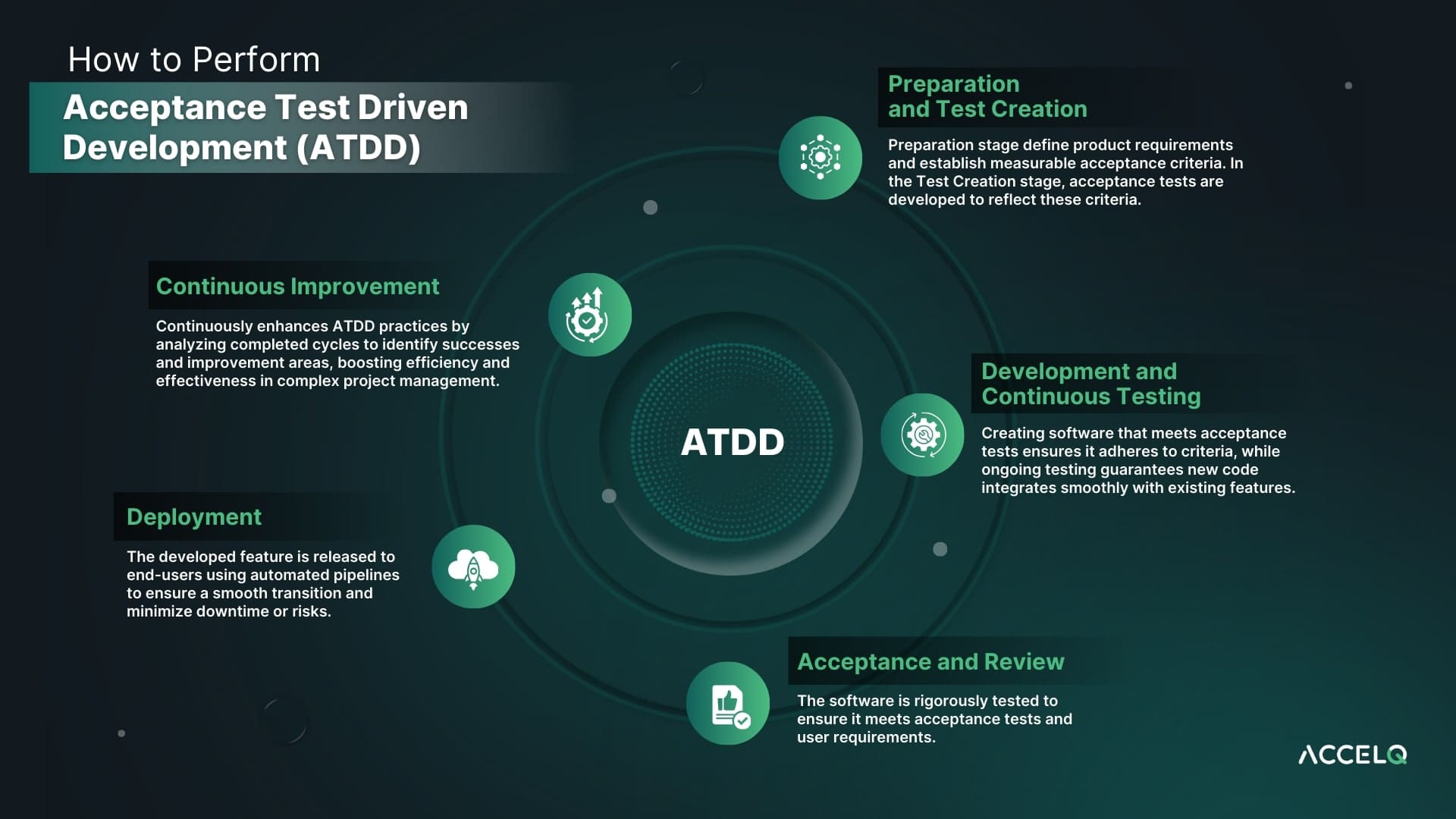 ATDD integrates acceptance testing into the software development lifecycle to ensure all developed features meet the stakeholder’s predefined criteria.