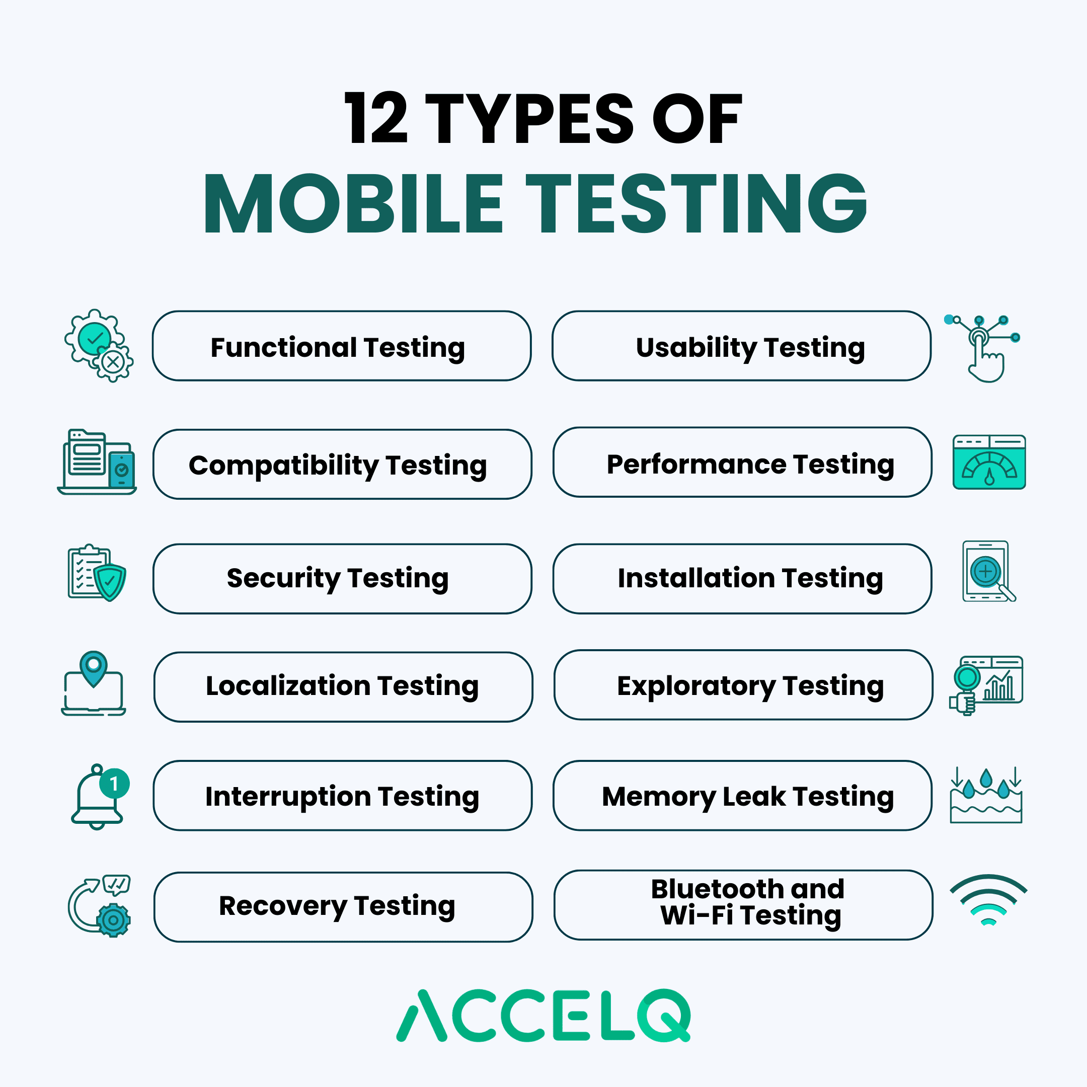 Whether it’s functional testing, performance testing, or security testing, ACCELQ enables organizations to test early and often – and to test faster. Start simplifying and accelerating your mobile testing types with ACCELQ today.